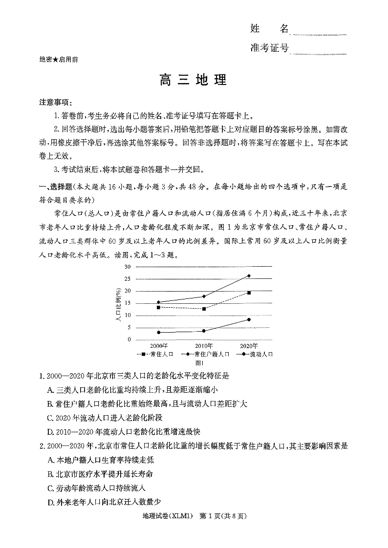 (长郡二十校)高三下学期3月第一次(二模)联考 地理.pdf