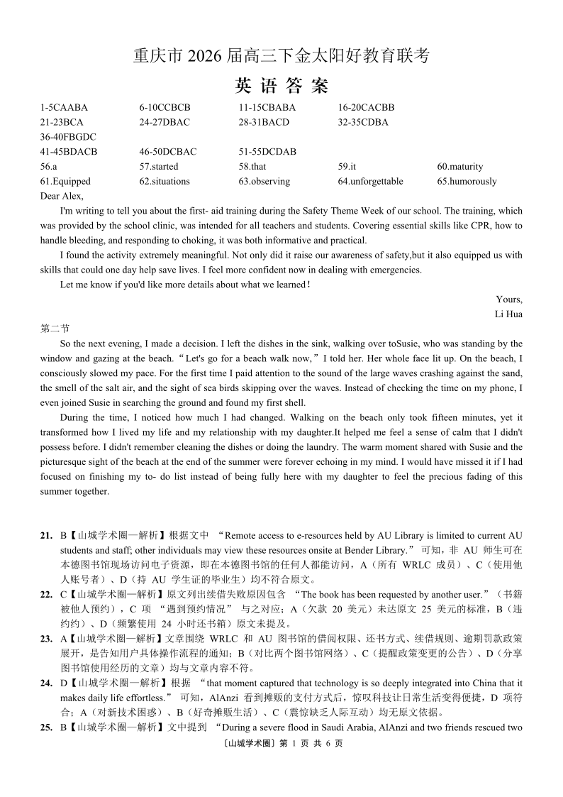 重庆好教育联盟2026届高三下学期3月开学联考 英语答案.pdf