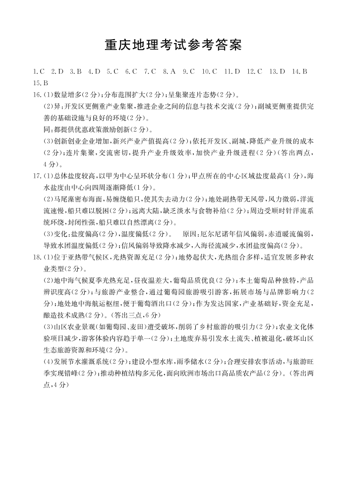 重庆好教育联盟2026届高三下学期3月开学联考 地理答案.pdf