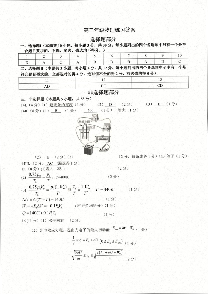 浙江省名校协作体G12联盟2026届高三下学期开学练习 物理答案.pdf