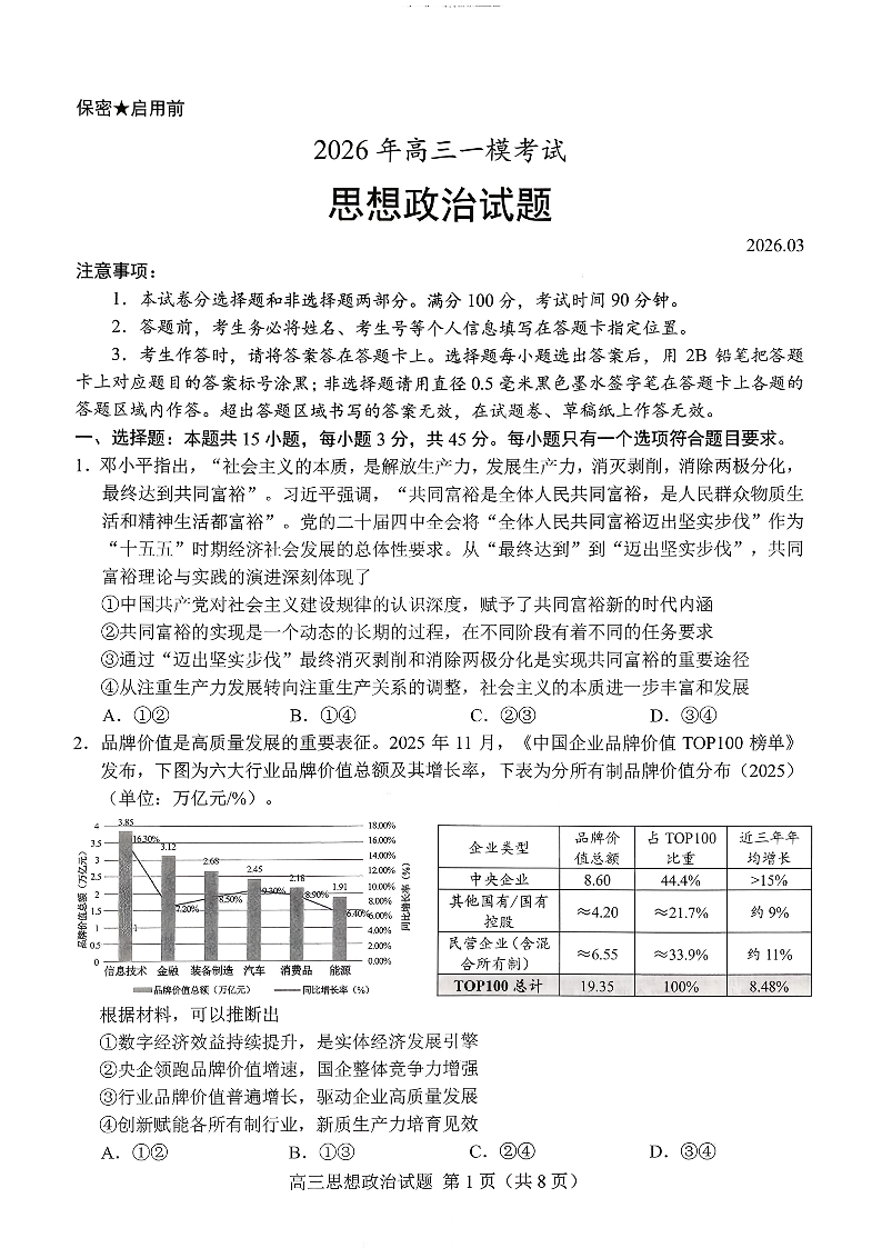 菏泽市2026年高三一模考试 政治试题(含答案).pdf