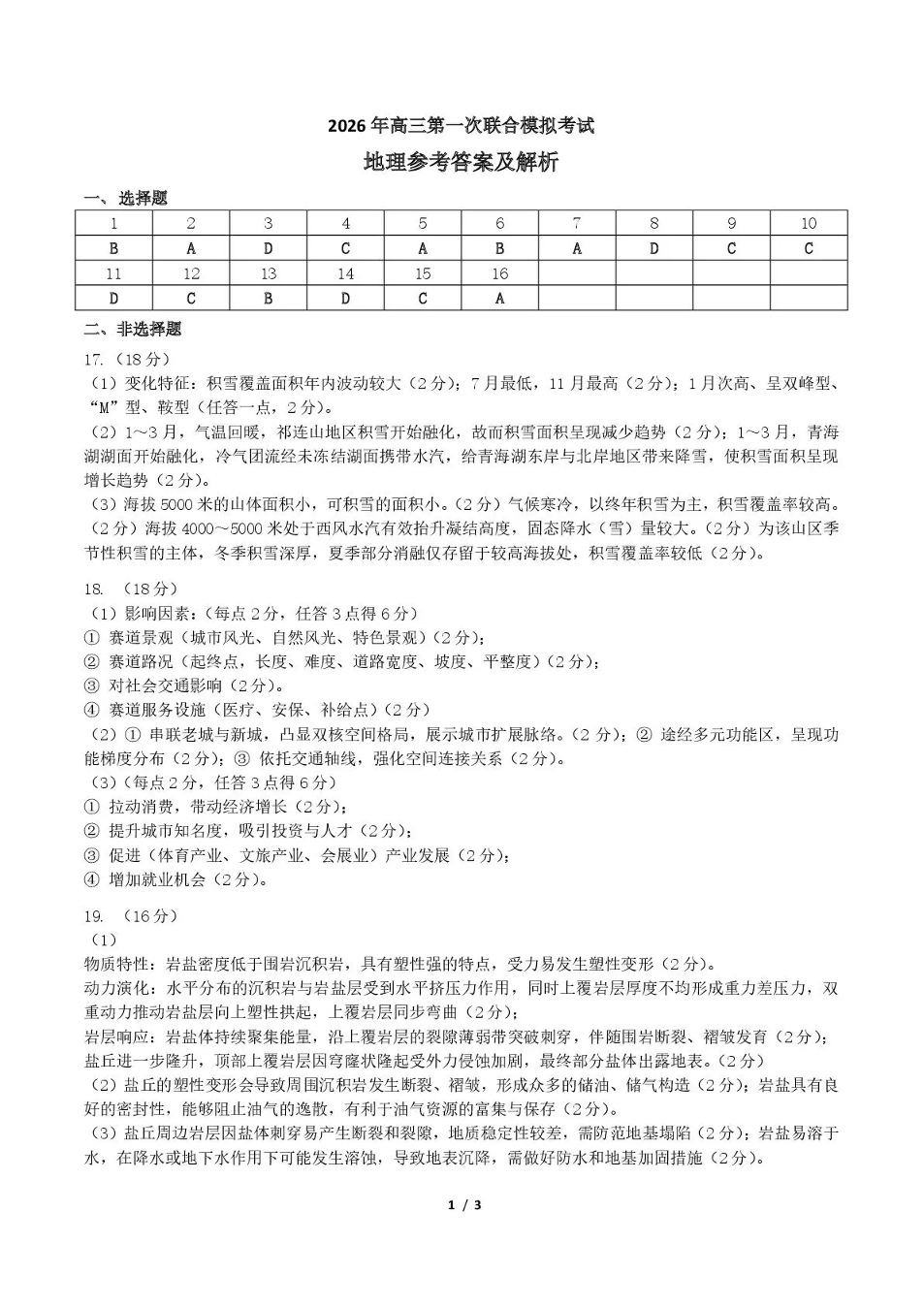 东北三省三校2026年高三第一次联合模拟考试 地理答案.pdf