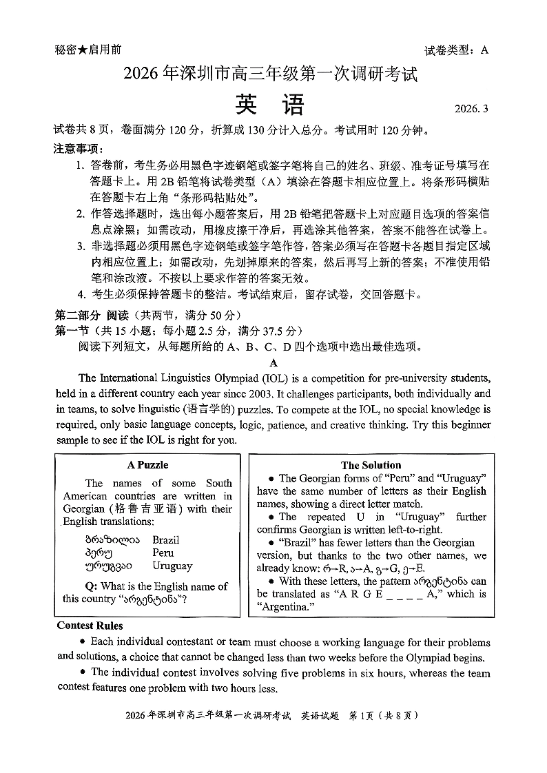 2026年深圳市高三年级第一次调研考试 英语.pdf