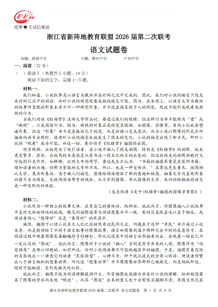浙江省新阵地教育联盟2026届第二次联考 语文.pdf