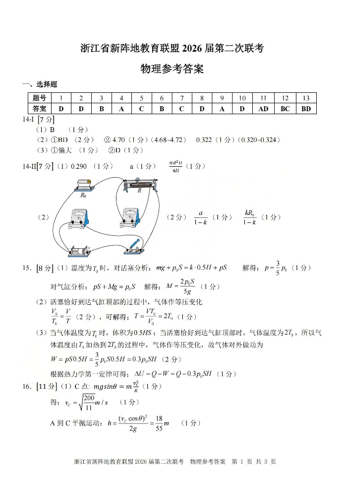 浙江省新阵地教育联盟2026届第二次联考 物理答案.pdf
