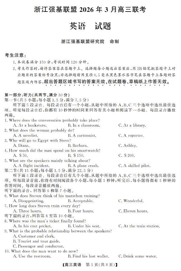 浙江强基联盟2026年3月高三联考 英语.pdf