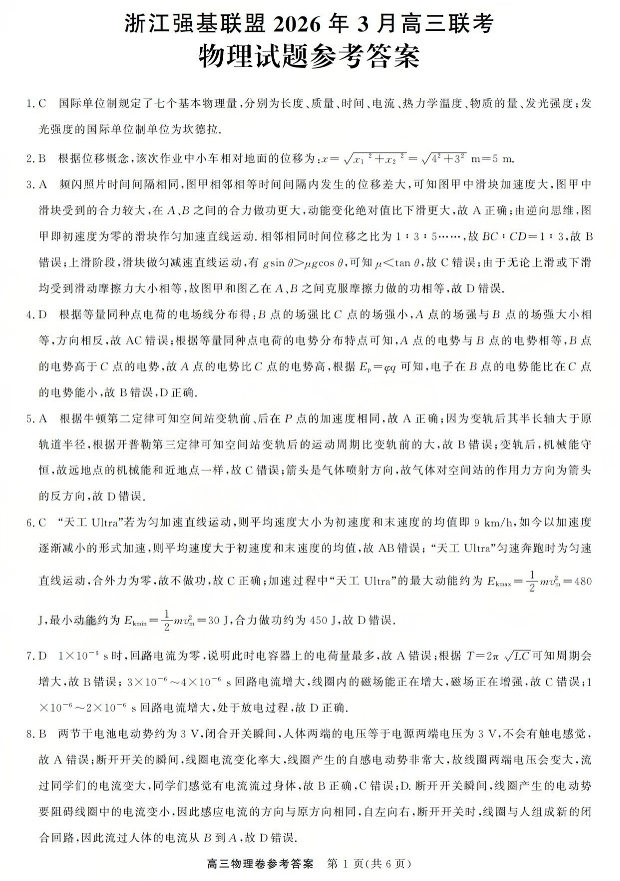 浙江强基联盟2026年3月高三联考 物理答案.pdf