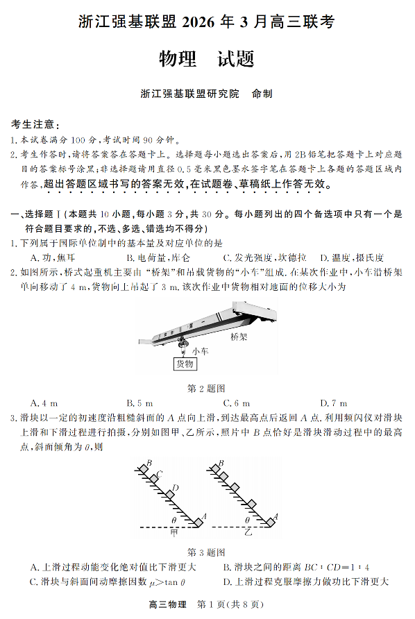 浙江强基联盟2026年3月高三联考 物理.pdf