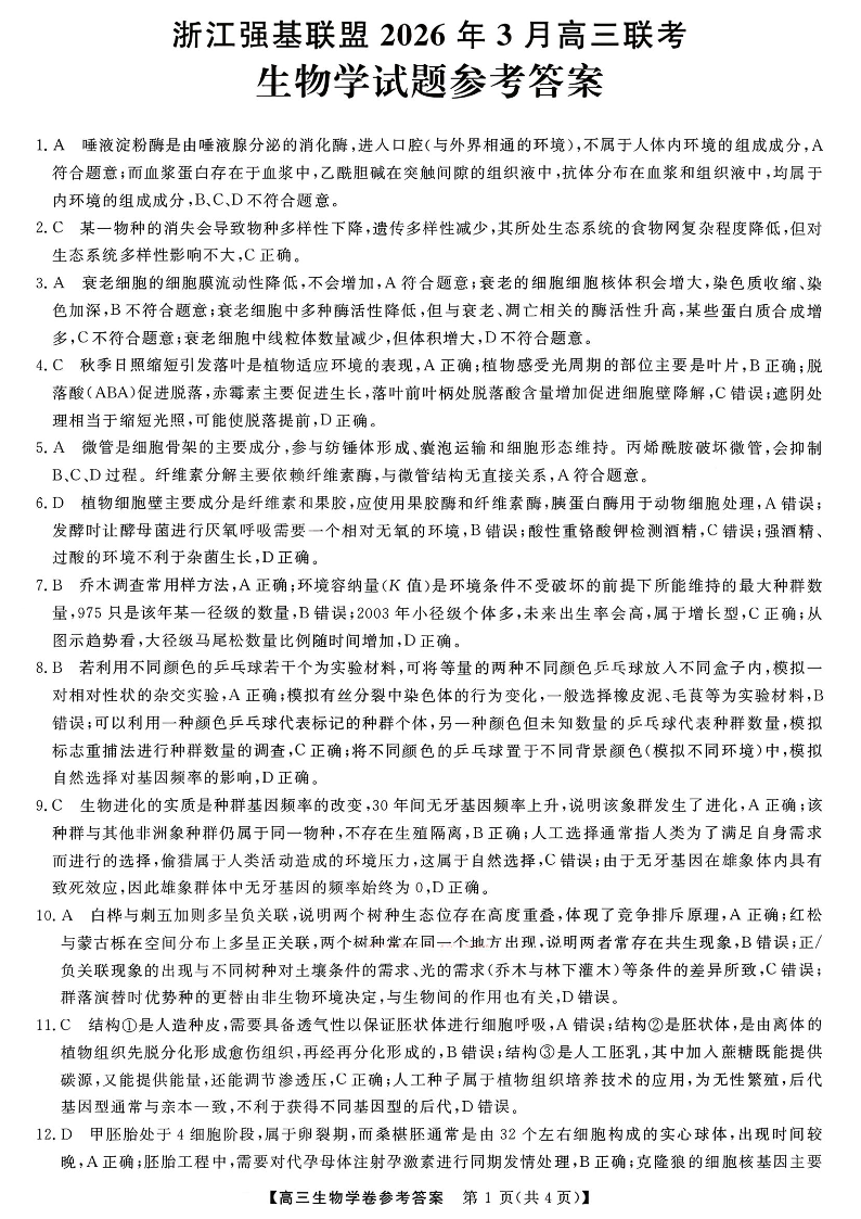 浙江强基联盟2026年3月高三联考 生物答案.pdf