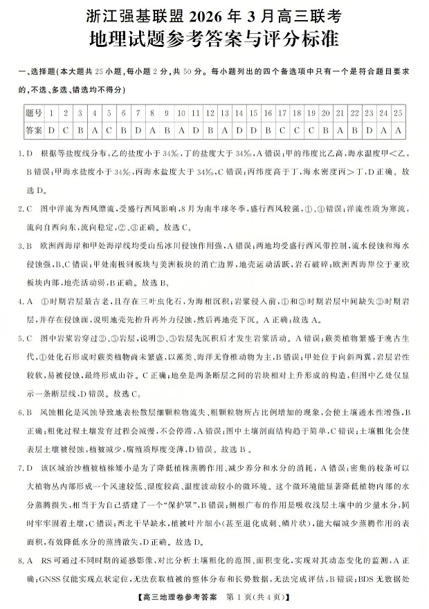 浙江强基联盟2026年3月高三联考 地理答案.pdf