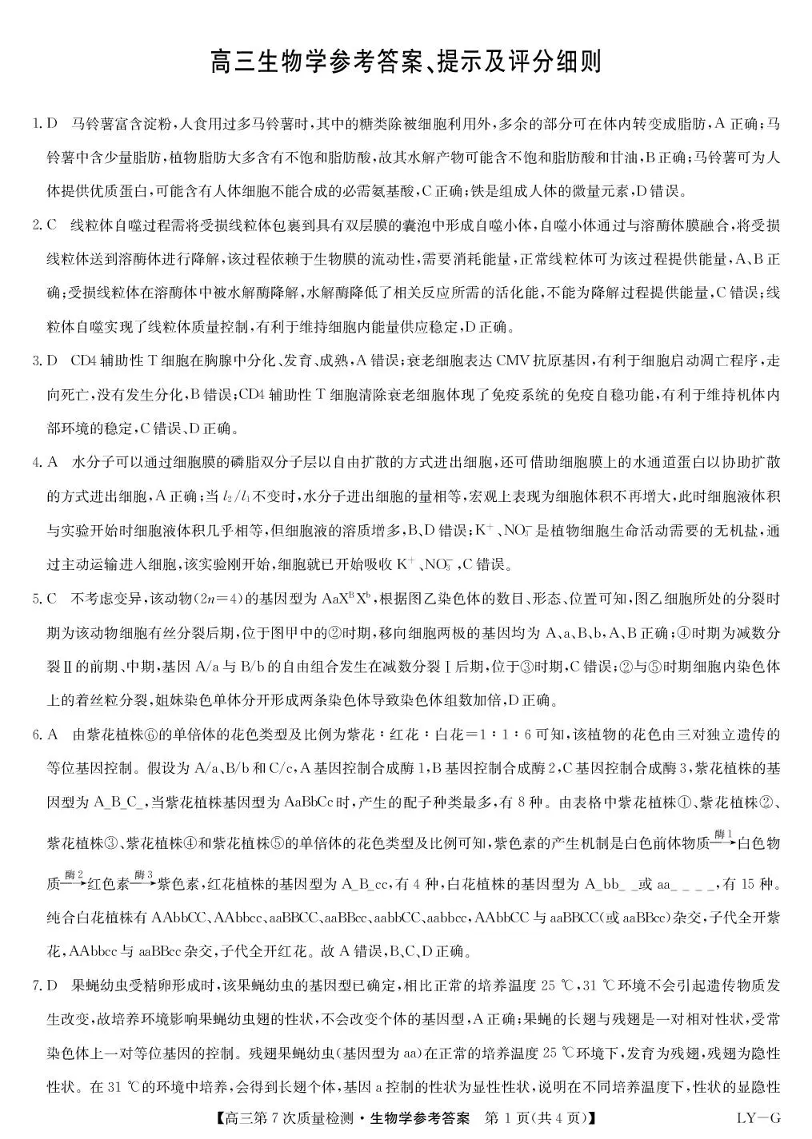 九师联盟2026届高三第7次质量检测 生物答案.pdf