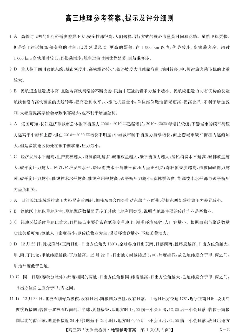 九师联盟2026届高三第7次质量检测 地理答案.pdf