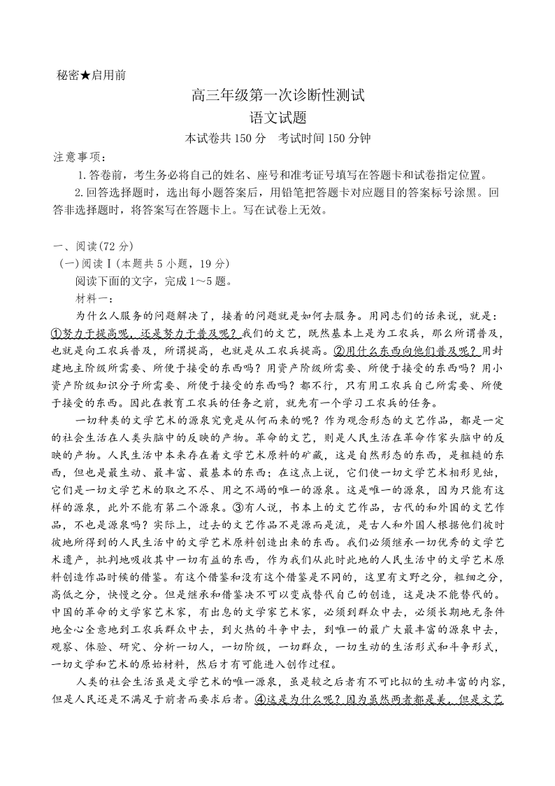 山东省东营市2026届高三年级第一次诊断性测试 语文.pdf