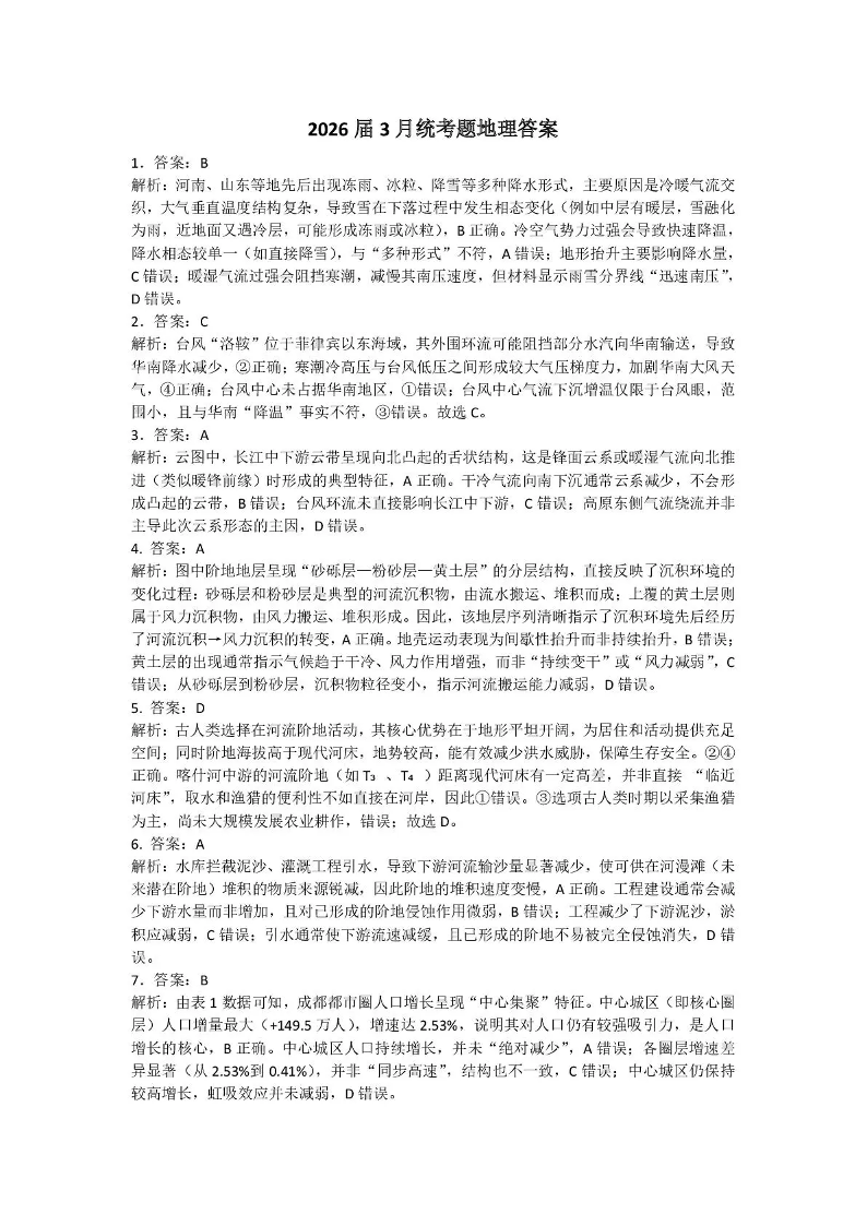 2026年3月襄阳市高三年级统一调研测试 地理答案.pdf