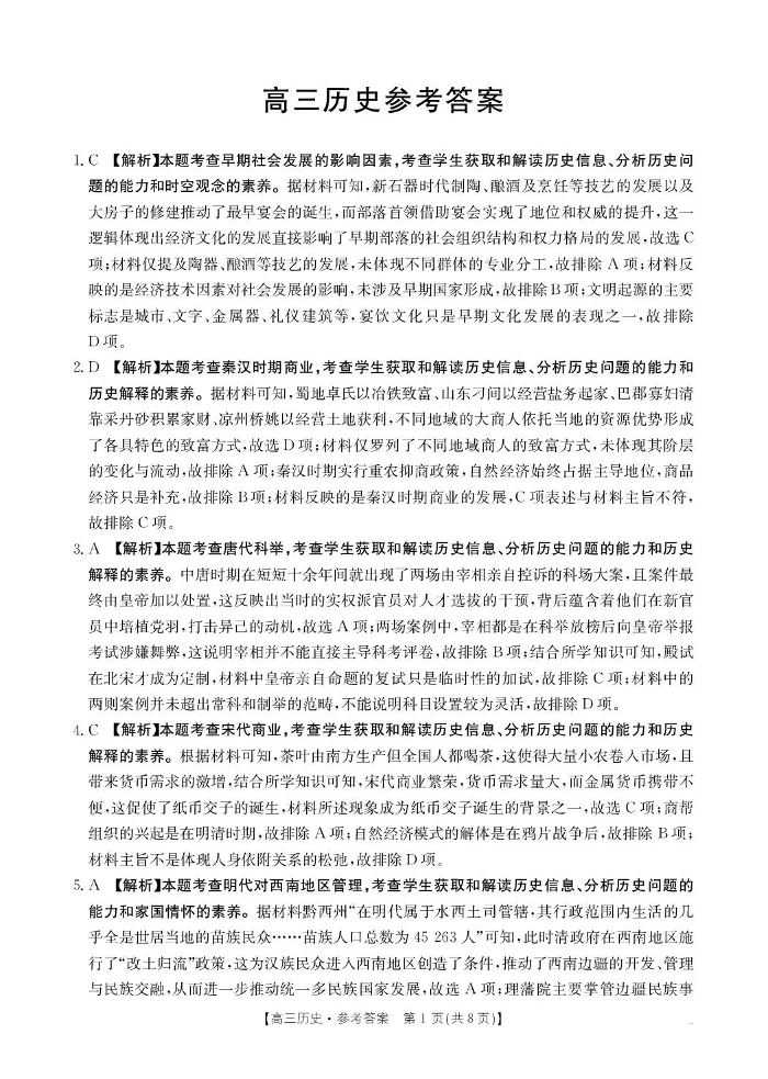 河南省2026届高三下学期3月开学联考 历史答案.pdf