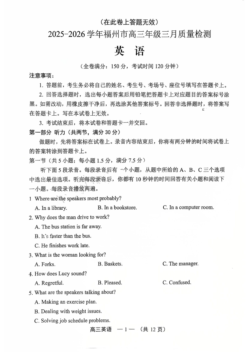 2025-2026学年福州市高三年级三月质量检测 英语.pdf