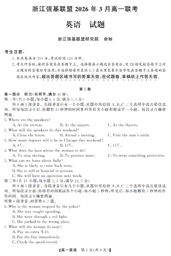 浙江强基联盟2026年3月高一联考 英语.pdf