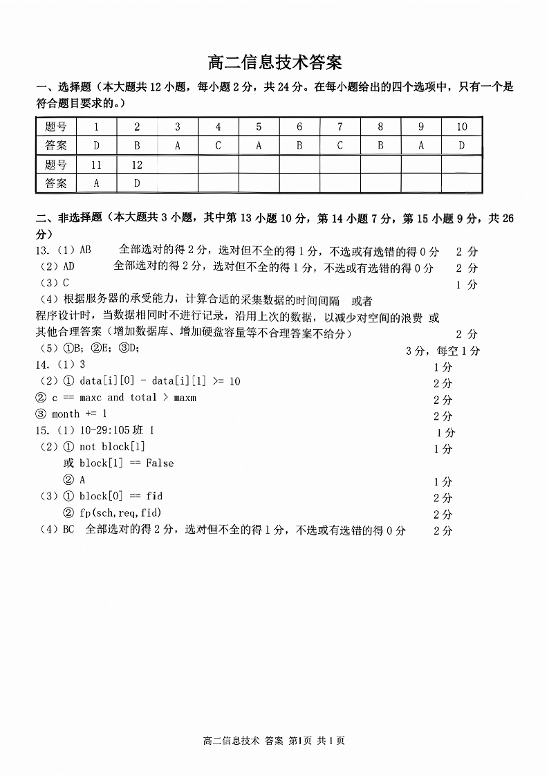 浙南名校联盟2026年高二年级下学期返校(开学)考试 技术答案.pdf