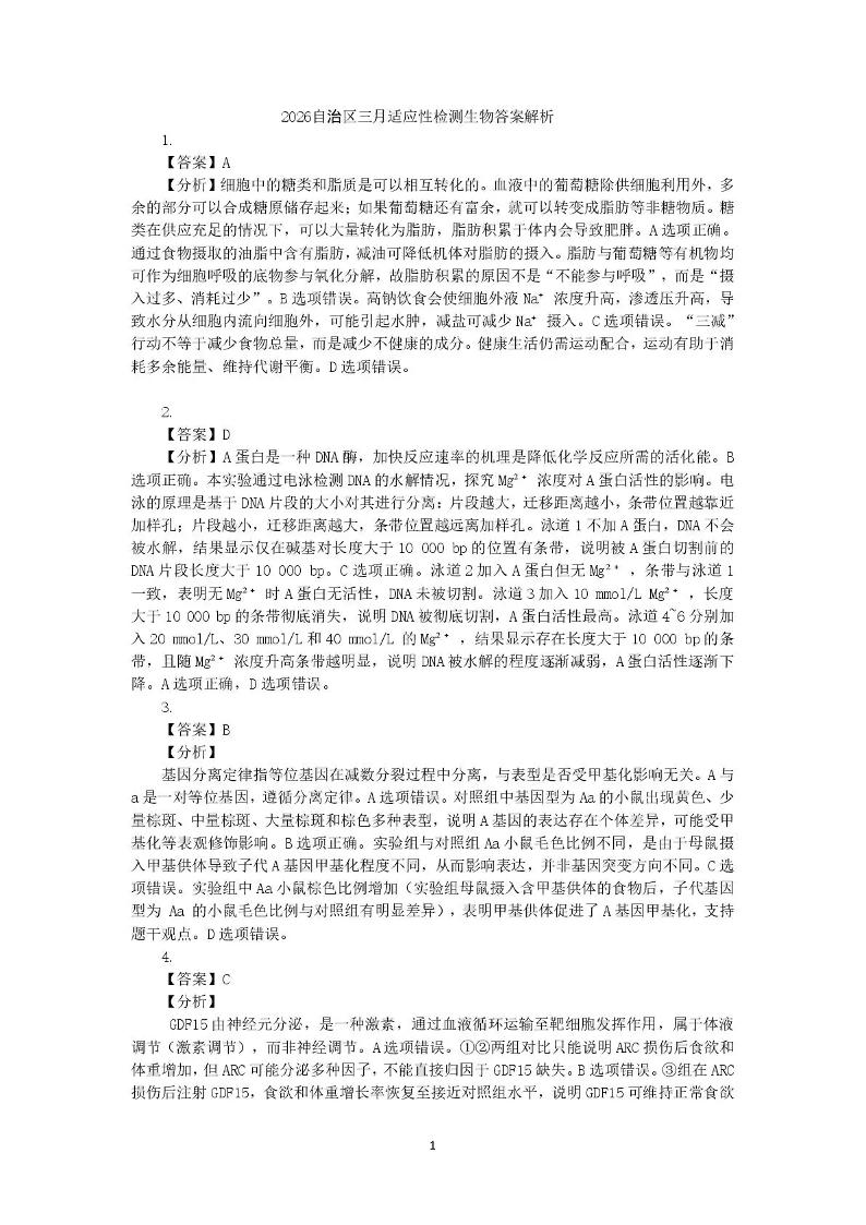 新疆2026年普通高考三月适应性检测 理综生物答案.pdf