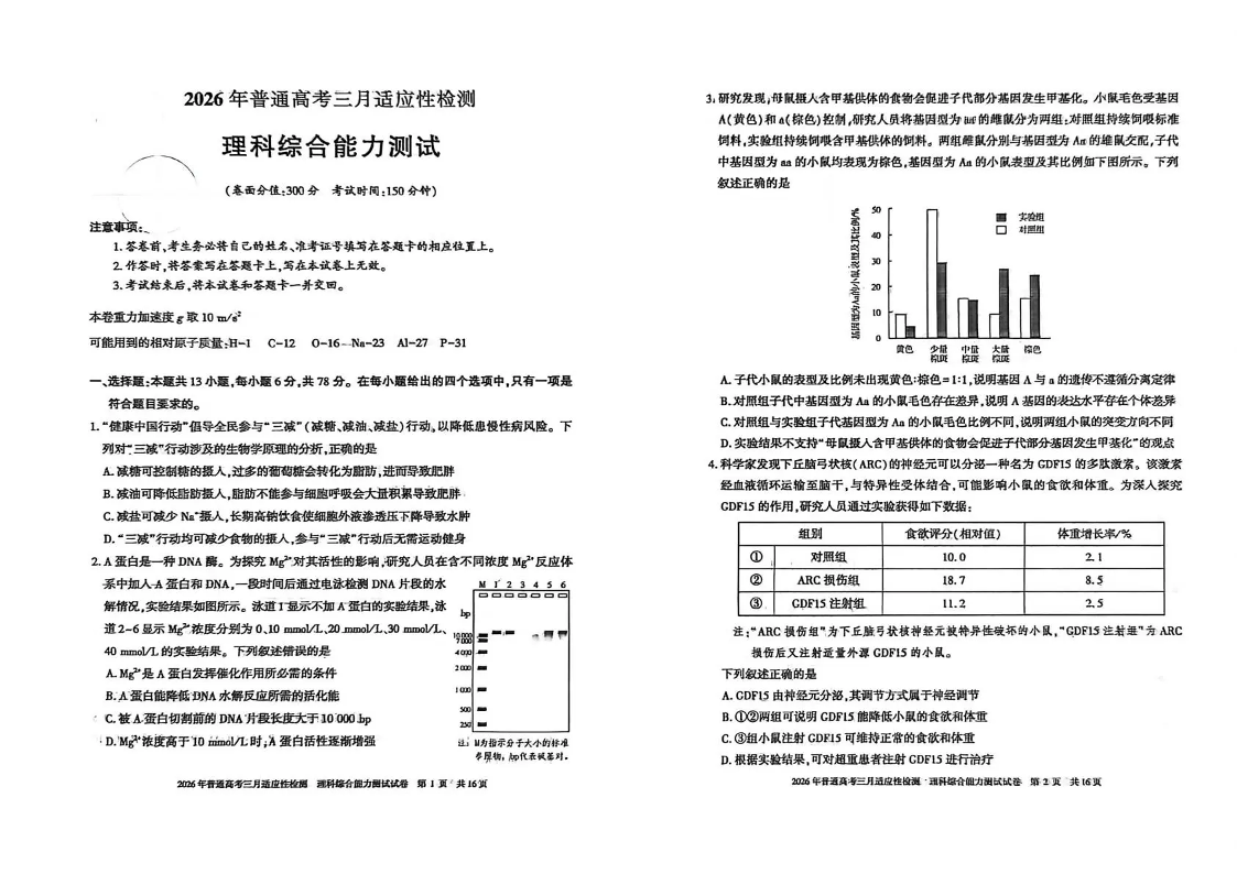 新疆2026年普通高考三月适应性检测 理综.pdf