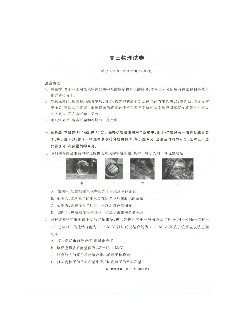 青海大通县朔山中学2025-2026学年高三下学期开学考试 物理.pdf