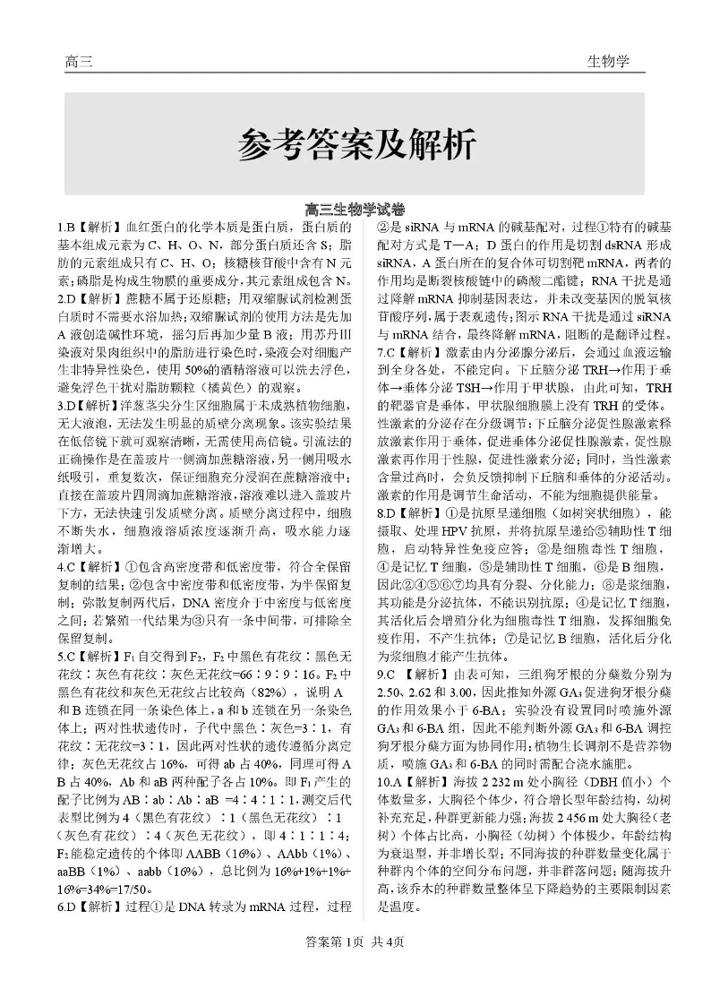 青海大通县朔山中学2025-2026学年高三下学期开学考试 生物答案.pdf