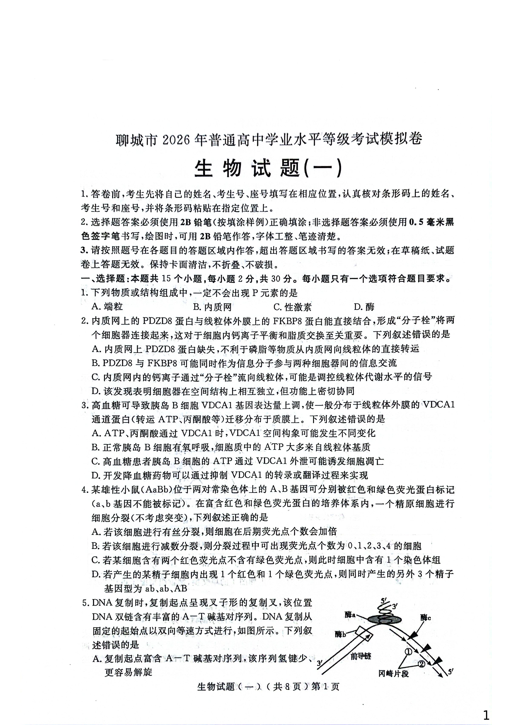 聊城市2026年普通高中学业水平等级考试模拟卷 生物.pdf