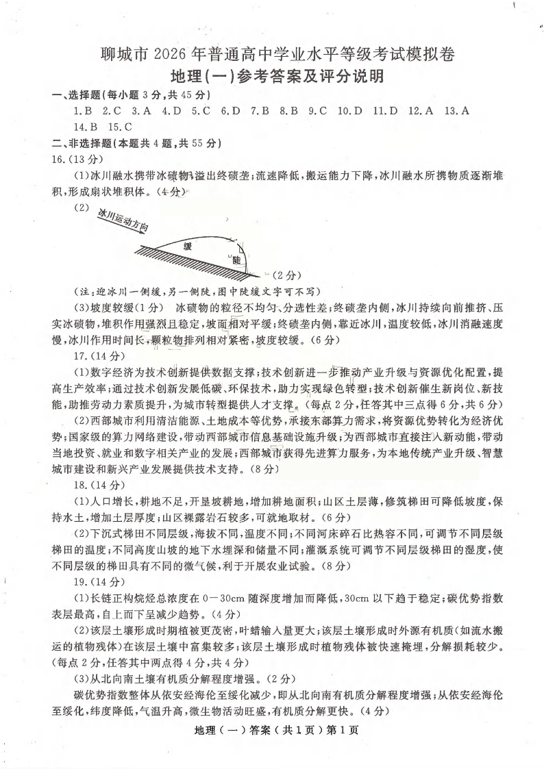 聊城市2026年普通高中学业水平等级考试模拟卷 地理答案.pdf