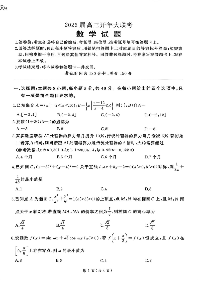数学B-百师联盟2026年高三年级下学期3月开年大联考.pdf