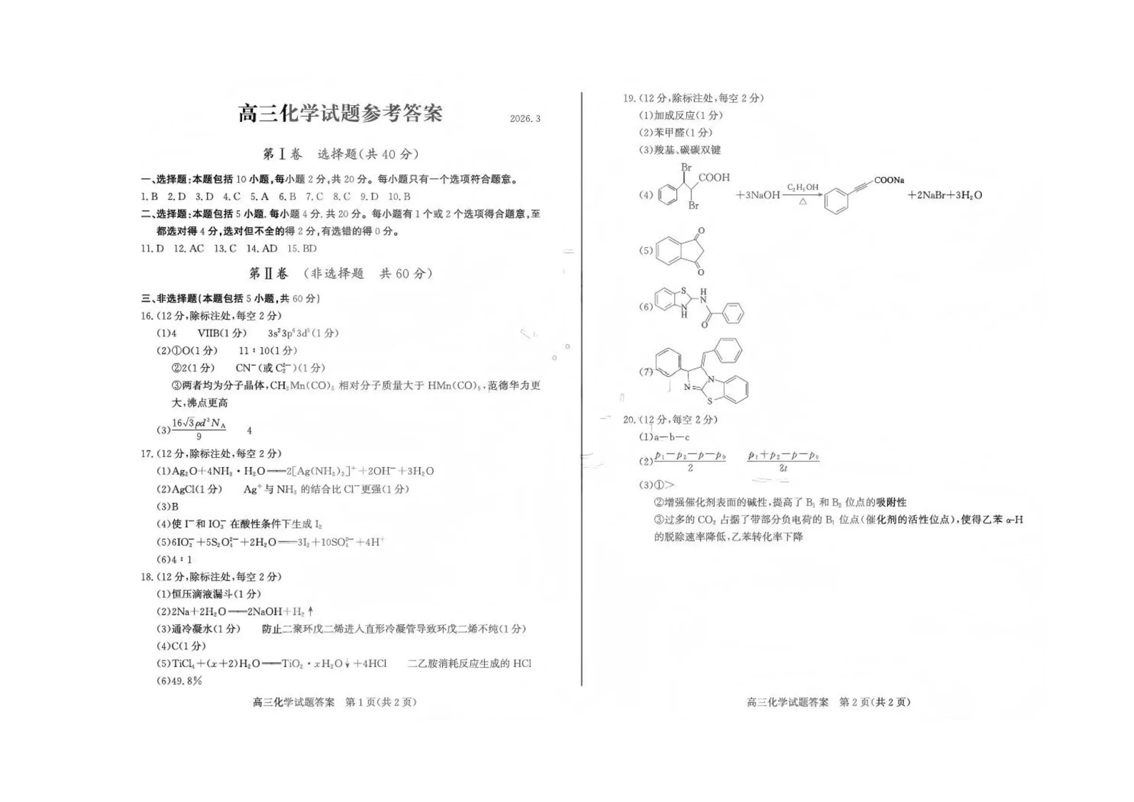 山东省滨州市2026届高三年级一模考试 化学答案.pdf