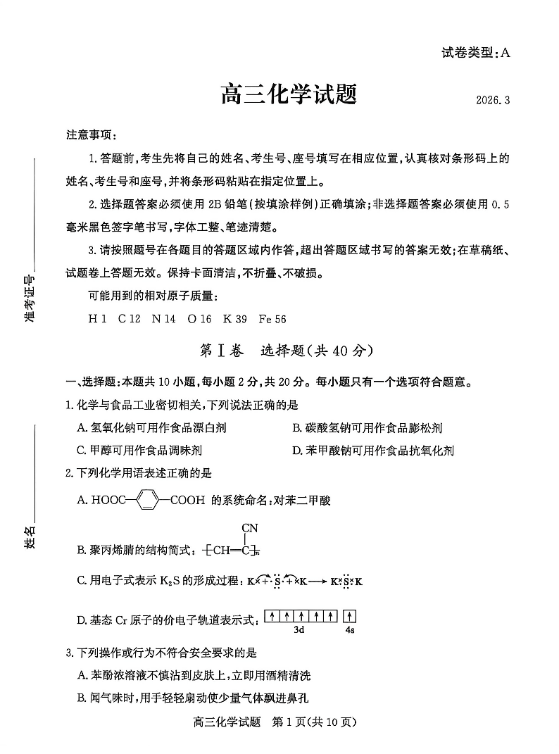 山东省滨州市2026届高三年级一模考试 化学.pdf
