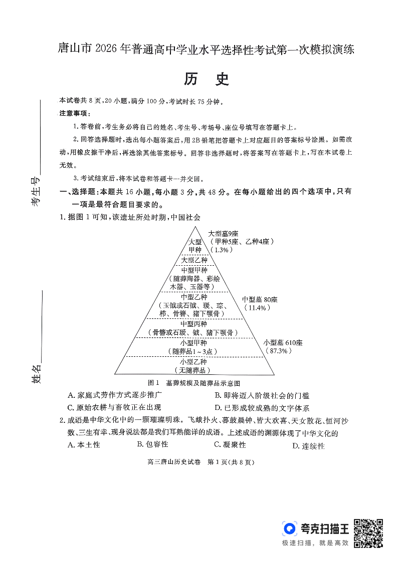 唐山市2026年普通高等学校招生统一考试第一次模拟演练 历史.pdf