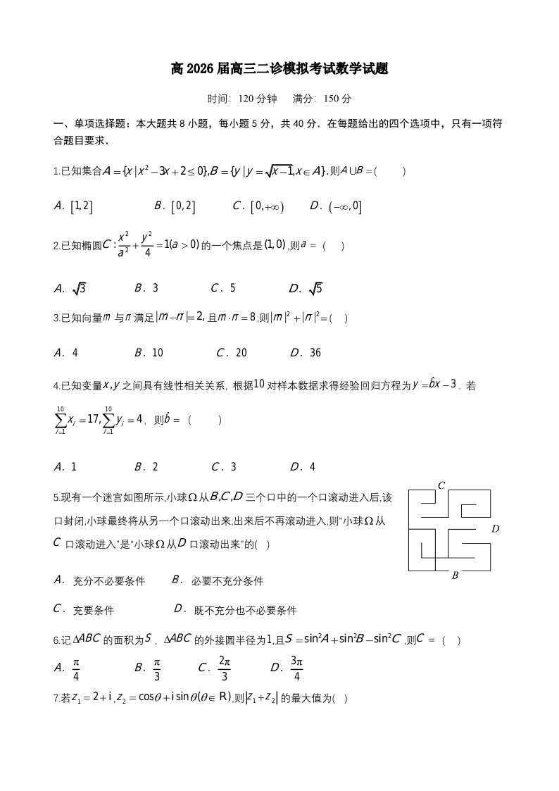 成都市第七中学2025~2026学年度下期高2026届二诊模拟考试 数学.pdf