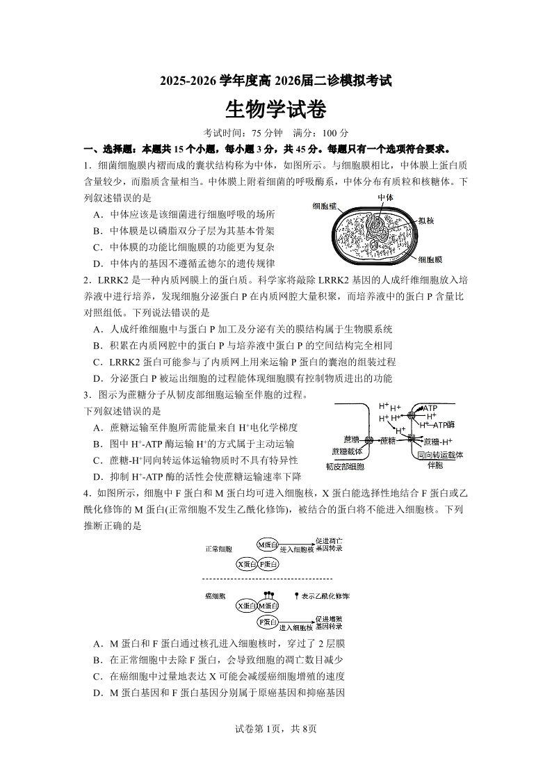 成都市第七中学2025~2026学年度下期高2026届二诊模拟考试 生物.pdf