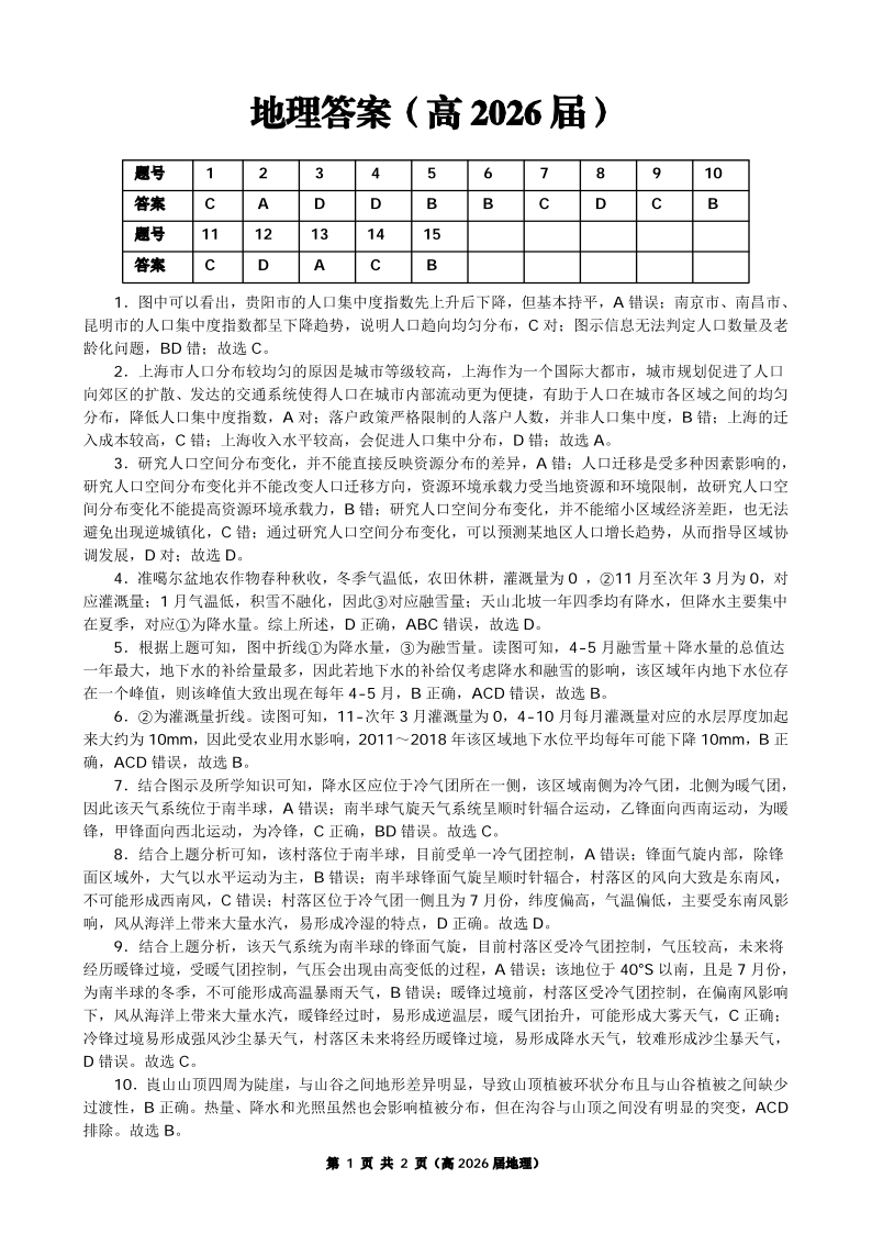 重庆名校联盟2026届高三下学期第一次联考 地理答案.pdf