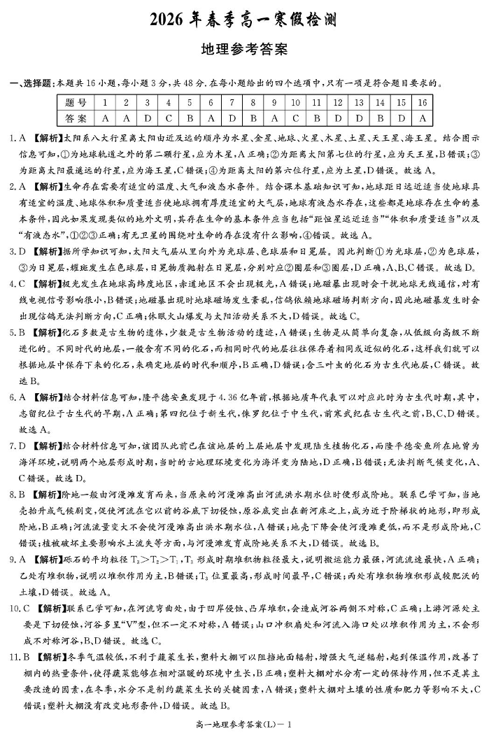 湖南省长沙市长郡中学2025-2026学年高一下学期入学考试 地理答案.pdf