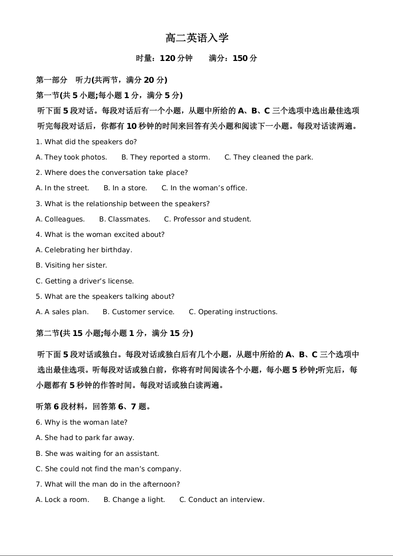 湖南省长沙市第一中学2025-2026学年高二下学期入学考试 英语答案.docx