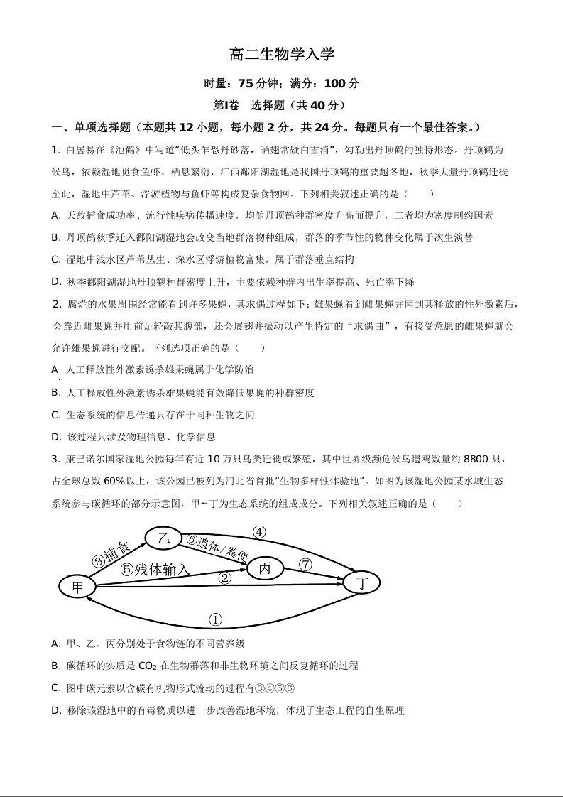 湖南省长沙市第一中学2025-2026学年高二下学期入学考试 生物.docx