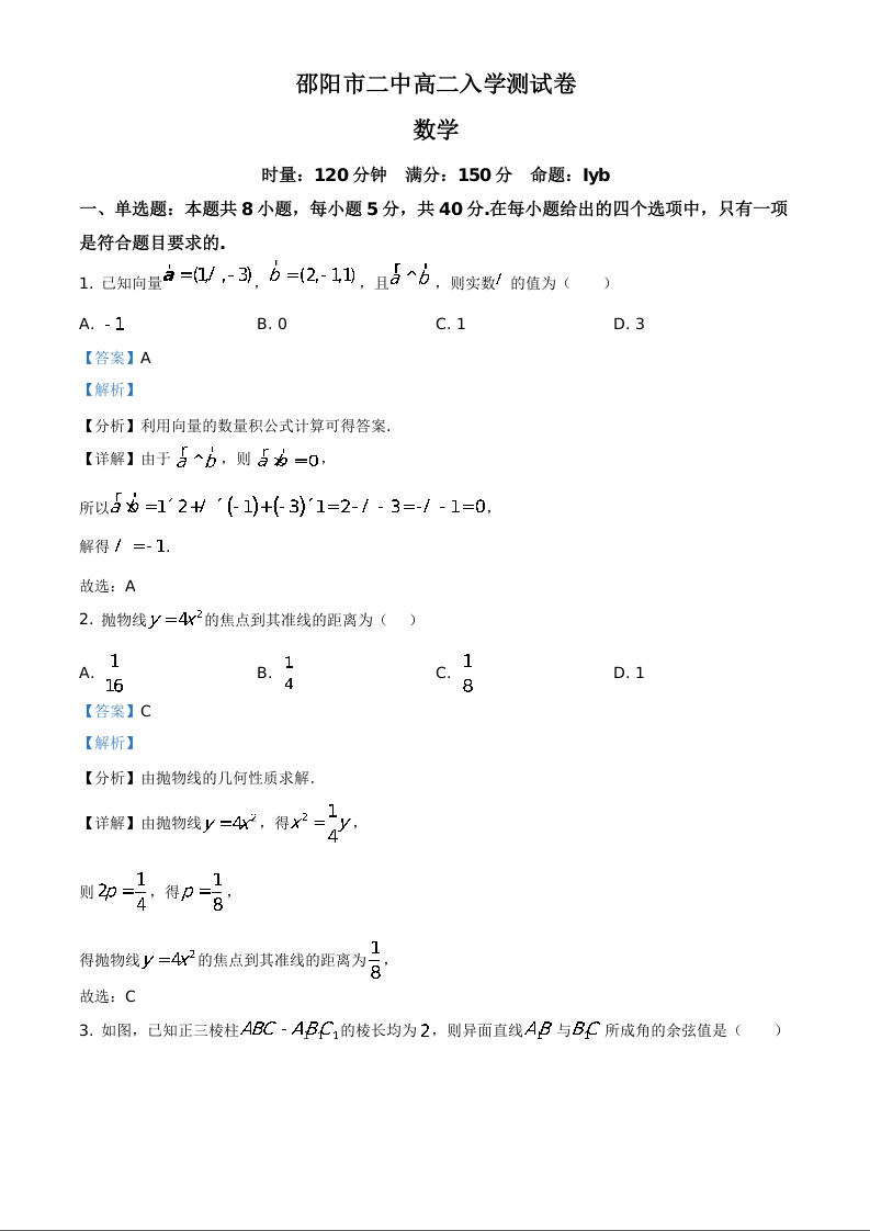 湖南省邵阳市第二中学2025-2026学年高二下学期入学考试 数学答案.docx