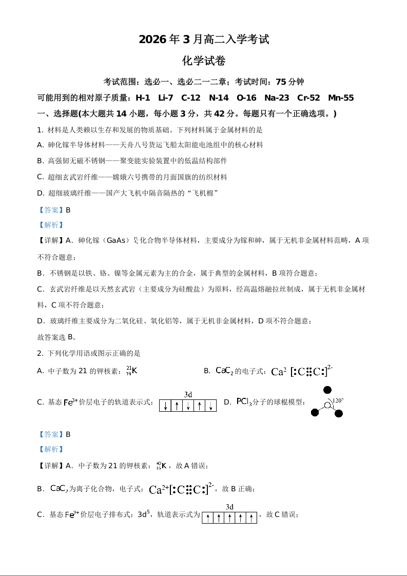 湖南省邵阳市第二中学2025-2026学年高二下学期入学考试 化学答案.docx