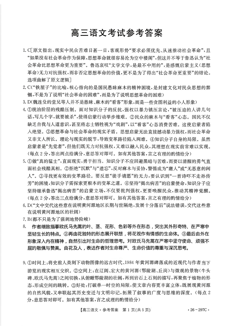 运城市2026年高考考前模拟测试 语文答案.pdf