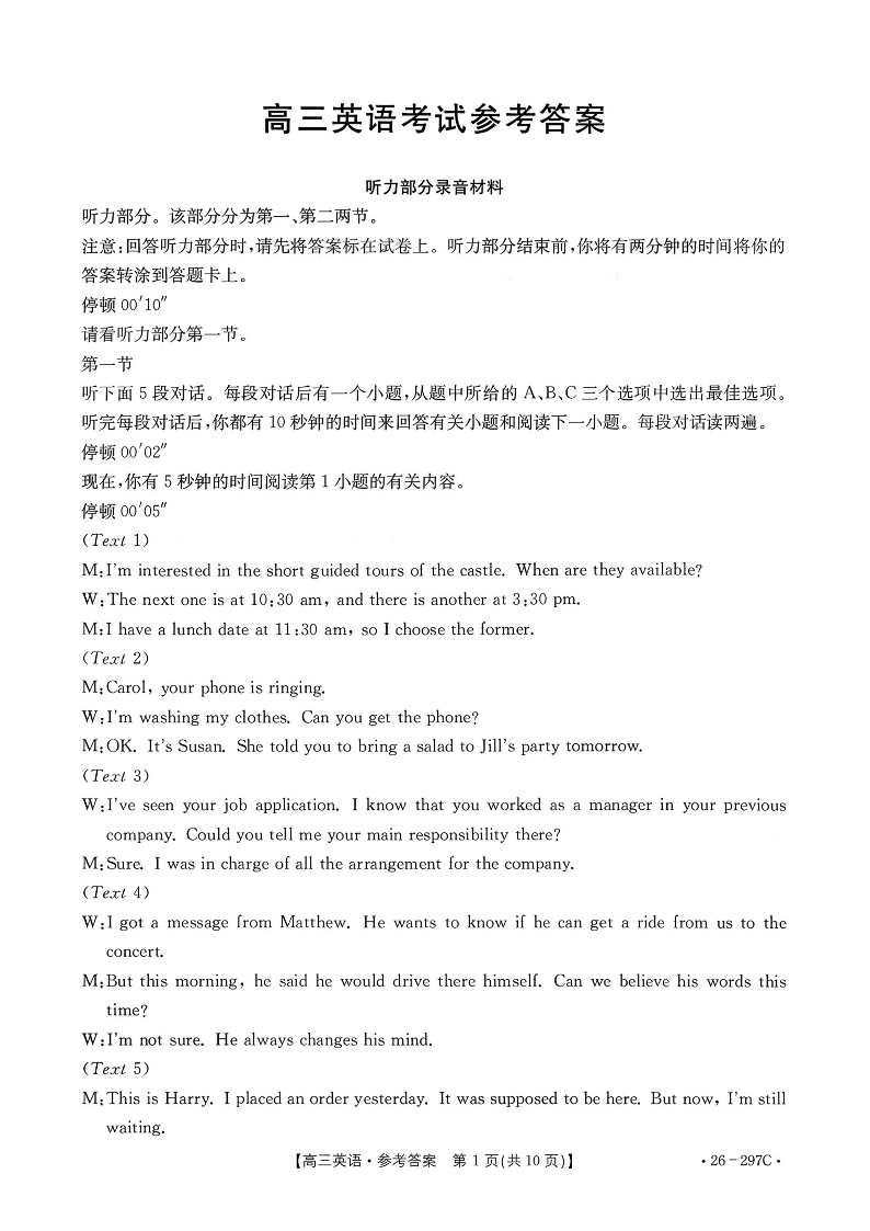 运城市2026年高考考前模拟测试 英语答案.pdf