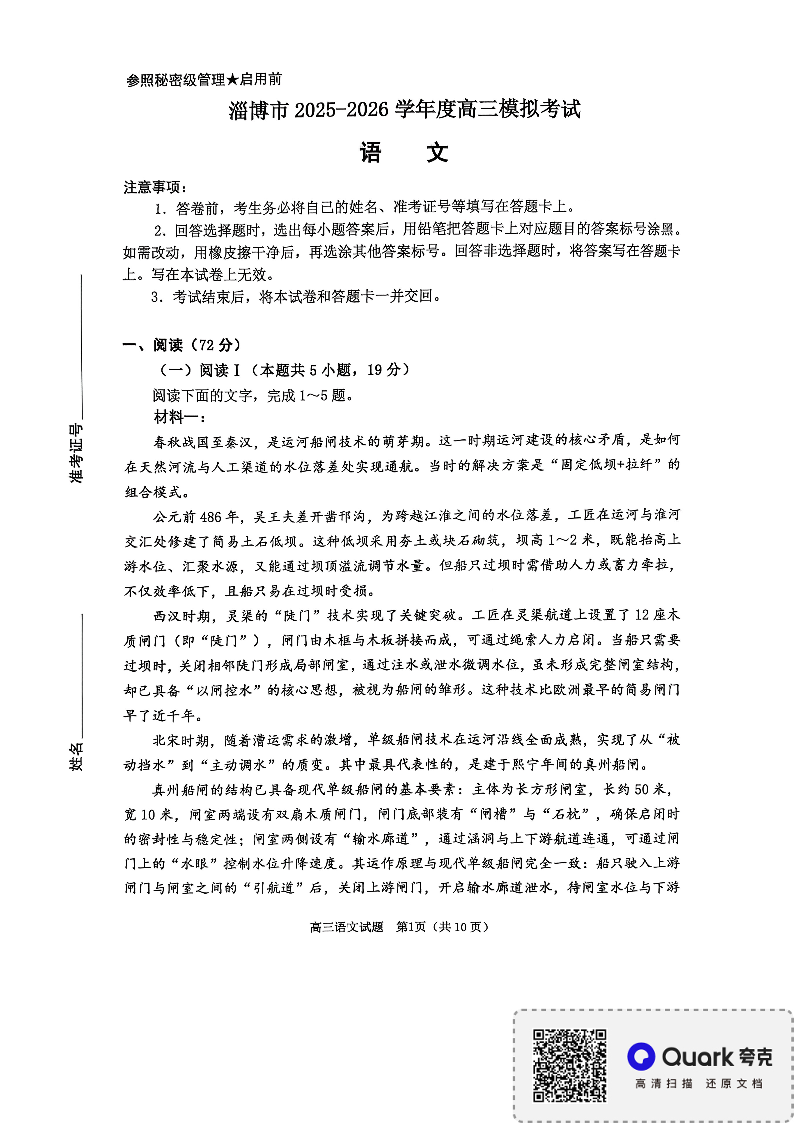 淄博市2025-2026学年度高三模拟考试 语文.pdf