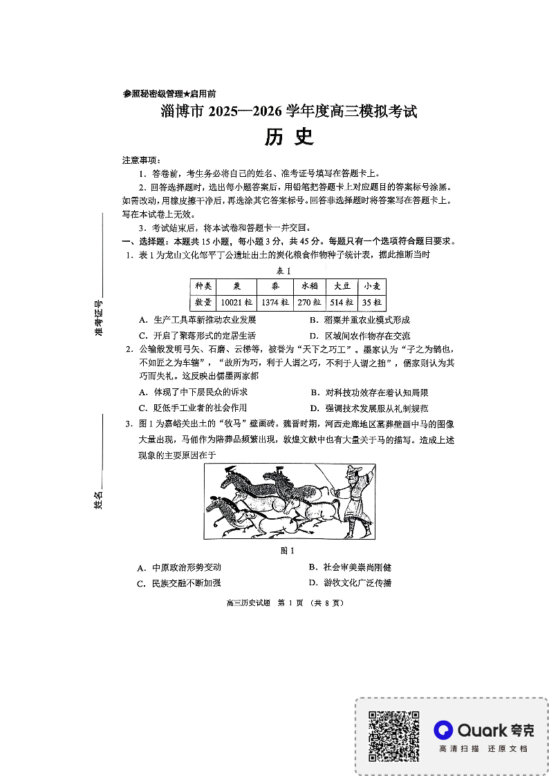 淄博市2025-2026学年度高三模拟考试 历史.pdf