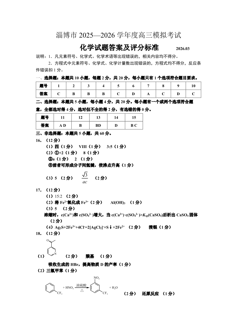 淄博市2025-2026学年度高三模拟考试 化学答案.pdf