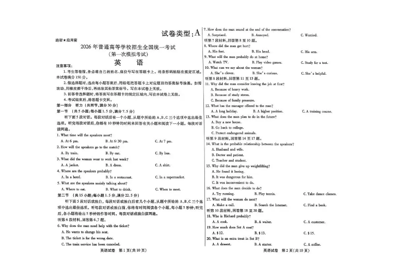 内蒙古包头市2026年高三第一次模拟考试 英语.pdf
