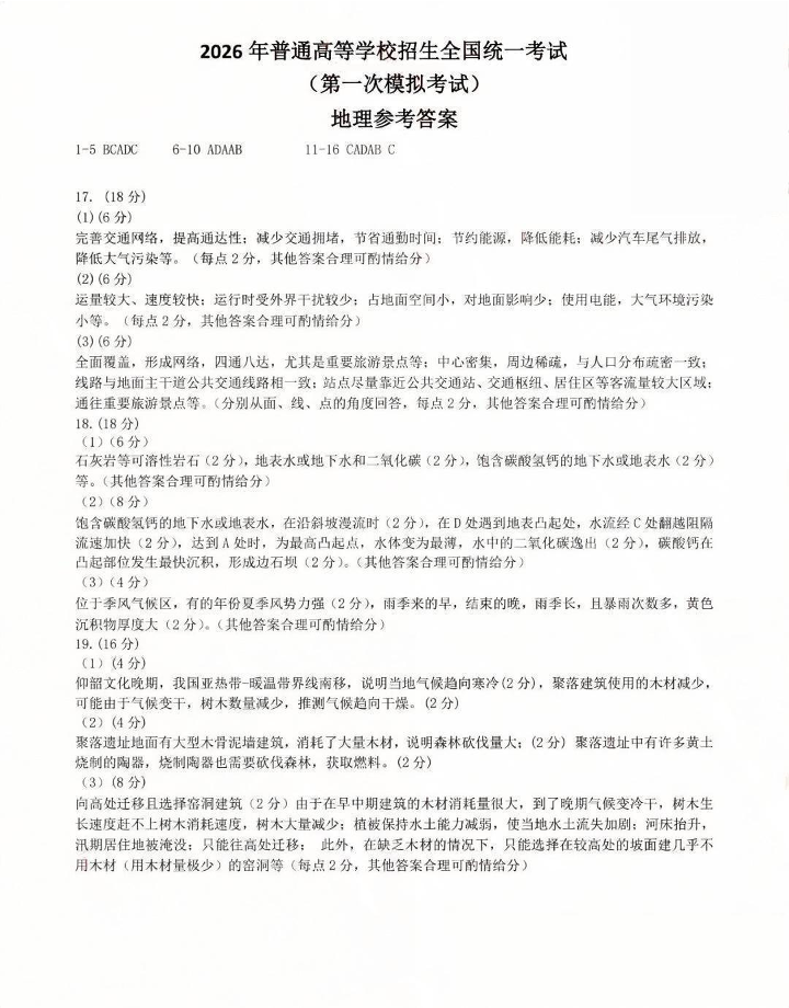 内蒙古包头市2026年高三第一次模拟考试 地理答案.pdf