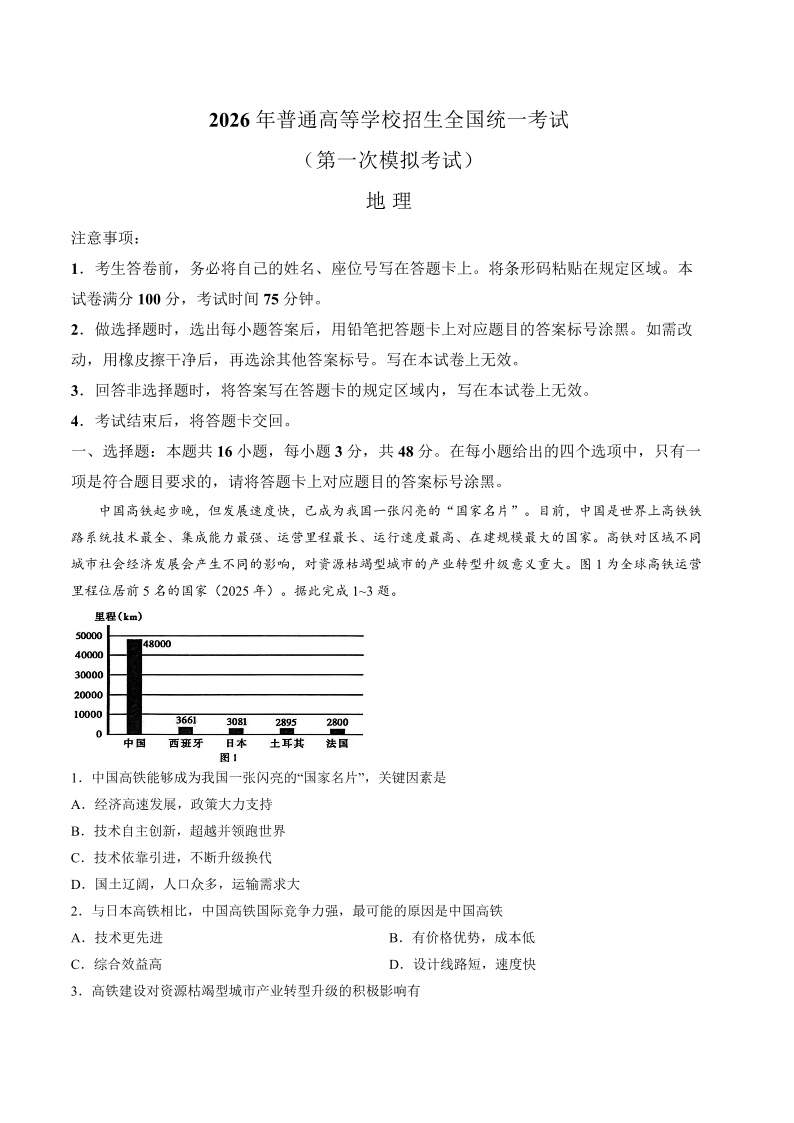 内蒙古包头市2026年高三第一次模拟考试 地理.pdf