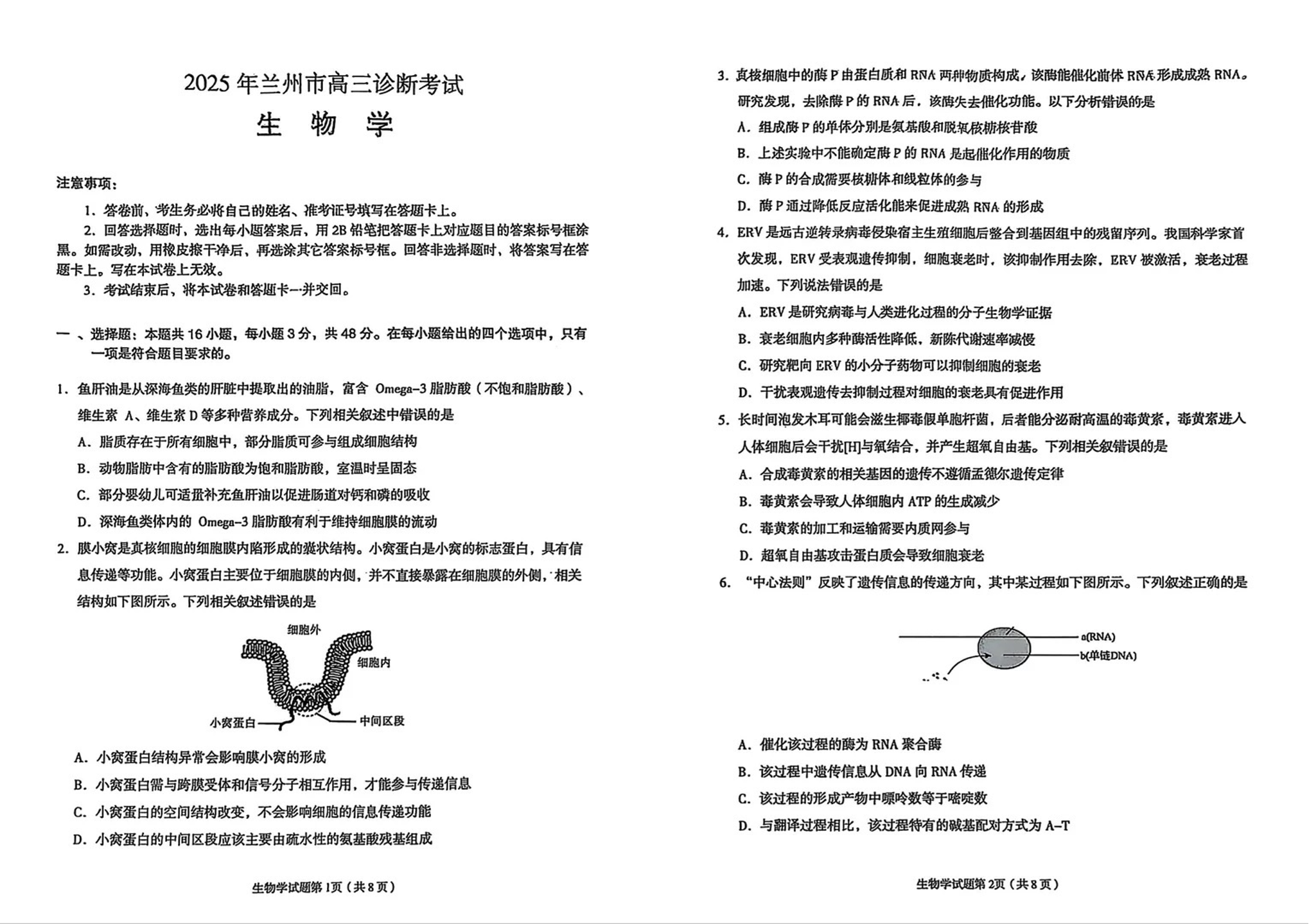 2026年兰州市高三模拟考试 生物.pdf