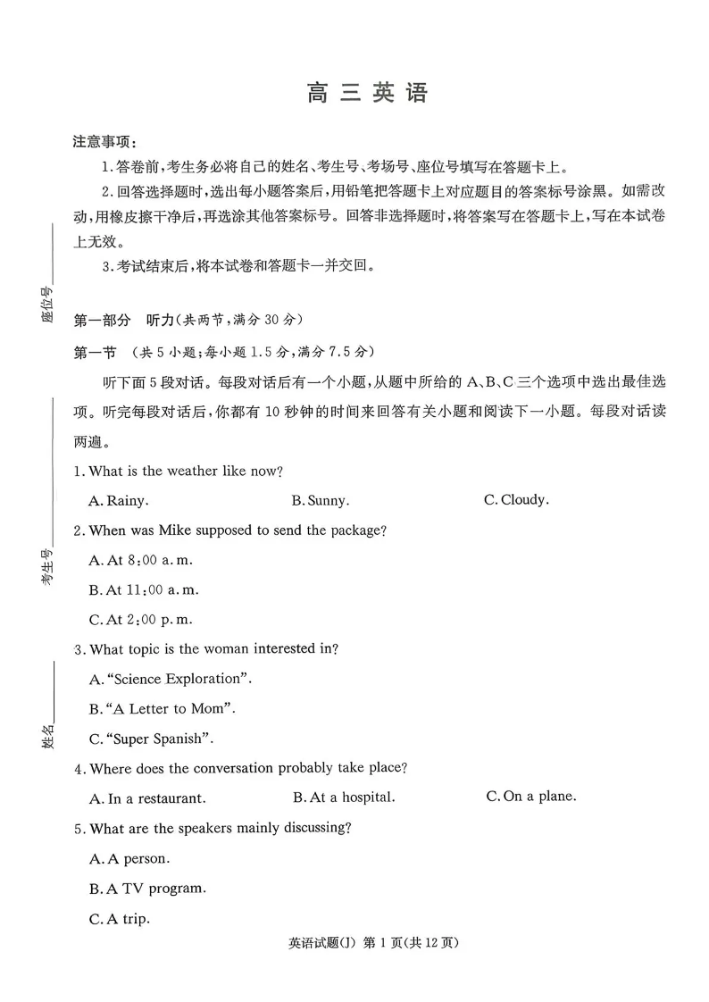 湖南省九校联盟2026届高三第二次联考(暨怀化市一模)英语.pdf